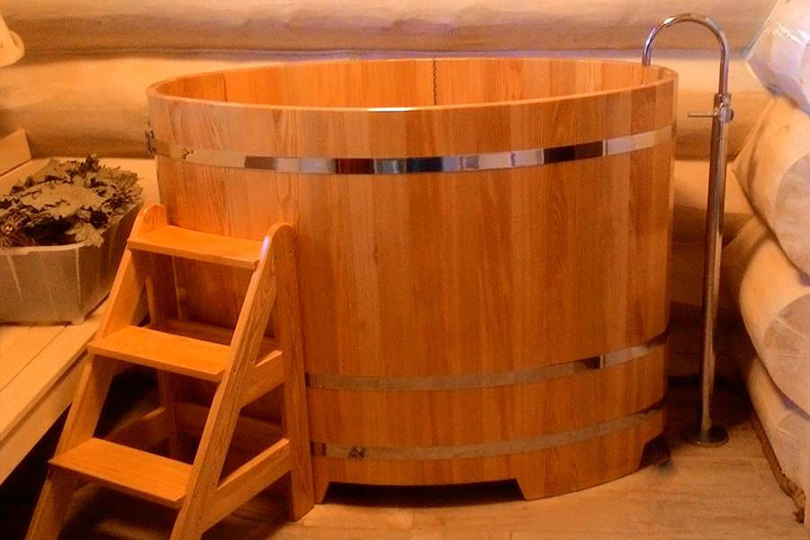 Для небольших бань установка бассейнов недоступна, но если все же хочется окунуться в прохладную воду после жаркой парилки, на помощь придет компактная купель.