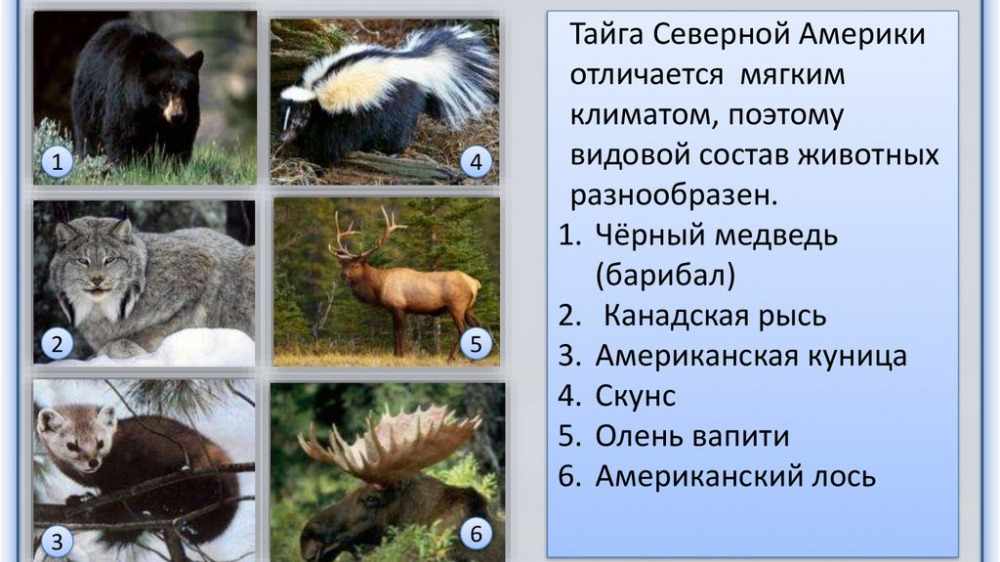 Североамериканская фауна также отличается удивительным многообразием. Вследствие значительной вытянутости материка от Аляски до экватора обширные территории континента располагаются почти во всех климатических поясах, что в свою очередь оказывает очень сильное влияние на формирование местного животного мира.