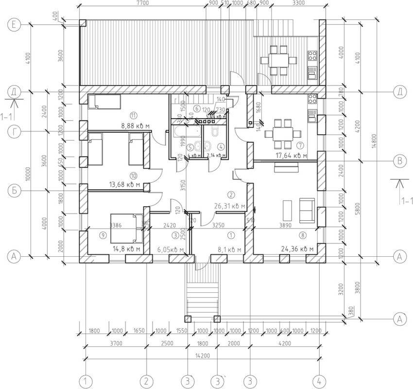 - Технические помещения — тамбур, котельная и другие.