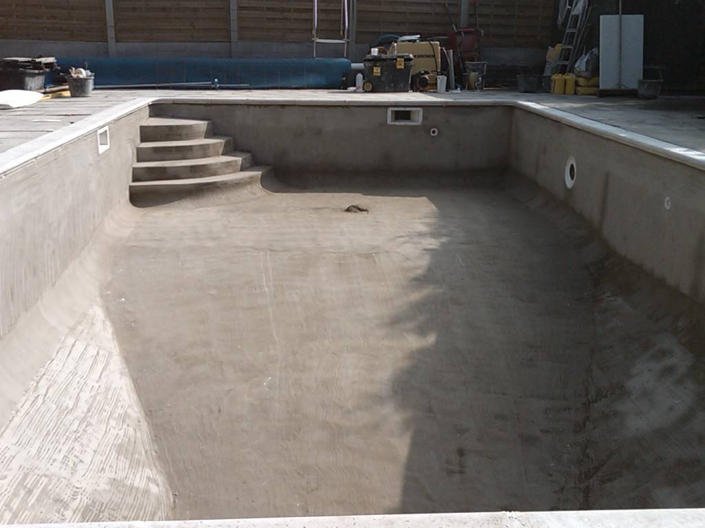 Из бетона можно создать всю чашу, включая стенки, но это требует долгого времени и огромного труда на установку опалубки и заливку.