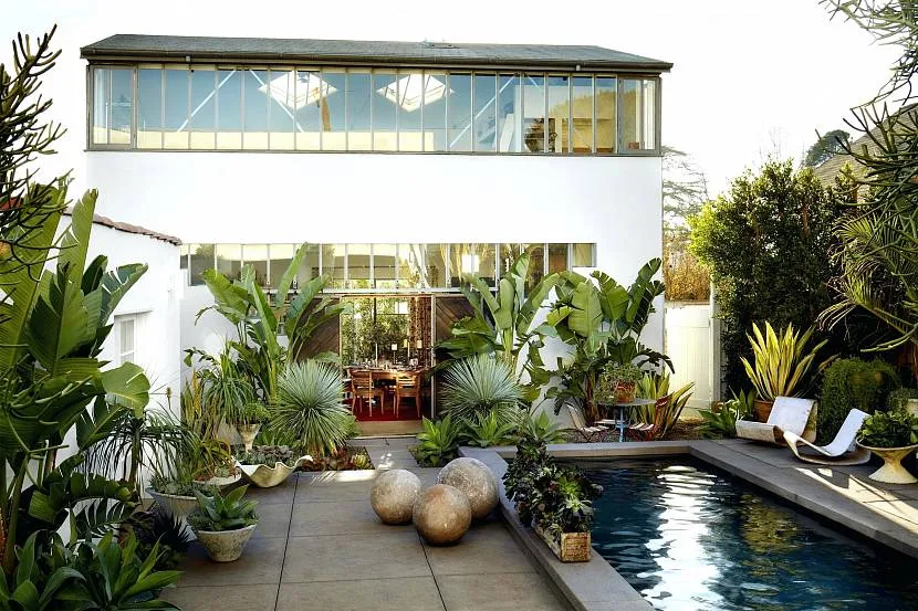 Как правило, при строительстве бассейна в стиле лофт используют все материалы: