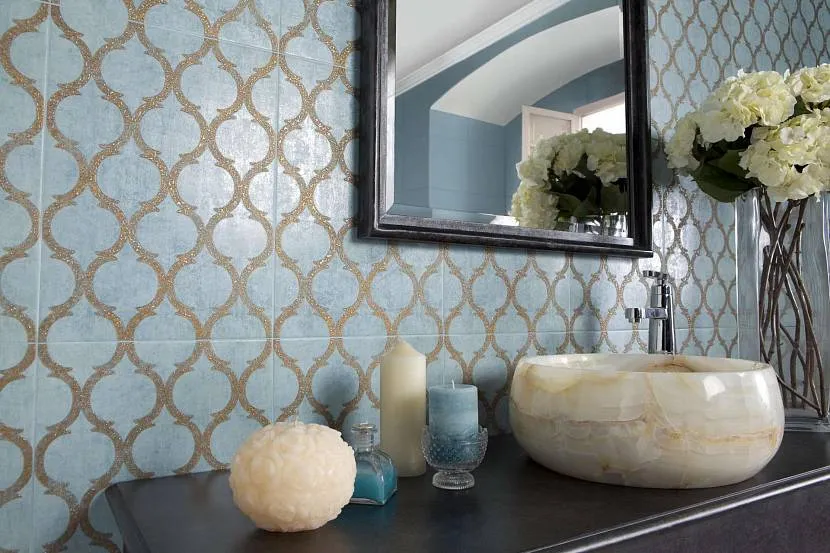 Можно оформить помещение и в другой цветовой палитре. Например, в бело-голубом цвете. Такая ванная комната будет напоминать о море. Можно дополнить образ расписной плиткой с растительным орнаментом, так вы приблизите его к окружающей природе.