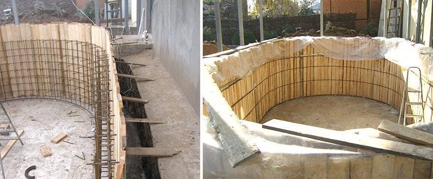 - Заливка бортов чаши, выдержка не менее 28 дней. Опалубку можно снять через 2 недели.