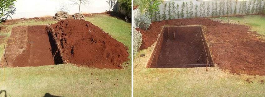 Заранее следует определиться с типом расположения бассейна. Он может быть полностью углубленный либо немного выступать над уровнем земли.