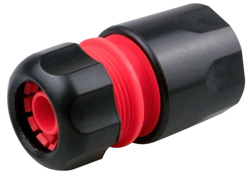 Соединение двух элементов шланга посредством быстросъема выполняется без использования инструмента. Перед тем как соединить два шланга для полива одного диаметра, следует отжать на муфте стопорную втулку в сторону адаптера. Муфта вставляется в ниппель, что осуществляется благодаря отхождению зажимных шариков. Далее выполняется разжим муфты, это создаст надежную фиксацию в ниппеле втулки. Обратные клапаны после соединения откроются, что будет способствовать свободному движению по шлангам рабочей среды.