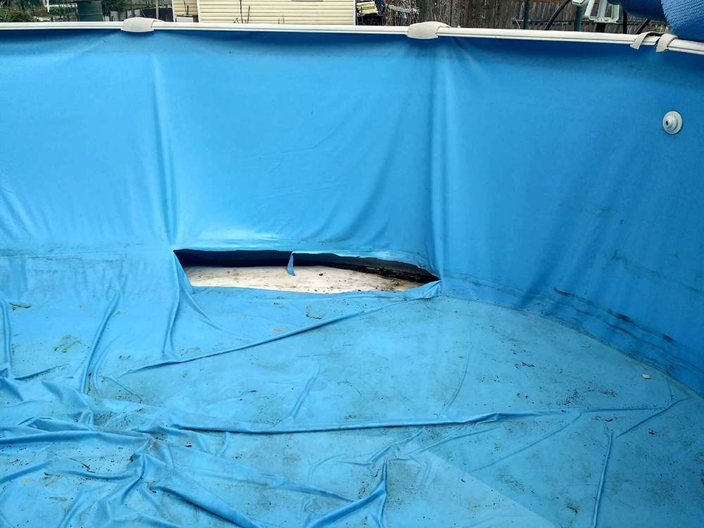 Маленькие прорези и проколы заливают клеем. А когда вырвали клок, ткань прожгли, проткнули чем-то толще, чем гвоздь, надо ставить латки. Если у вас такая проблема, то сделайте капитальный ремонт своего «водоёма». Но сначала спустите воду, помойте и высушите бассейн.
