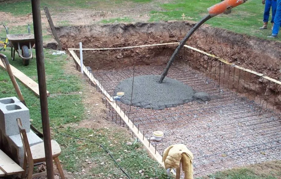 - устройство бетонной плиты, которая будет являться основанием для установки готовой чаши или частью сооружаемого на месте бассейна;