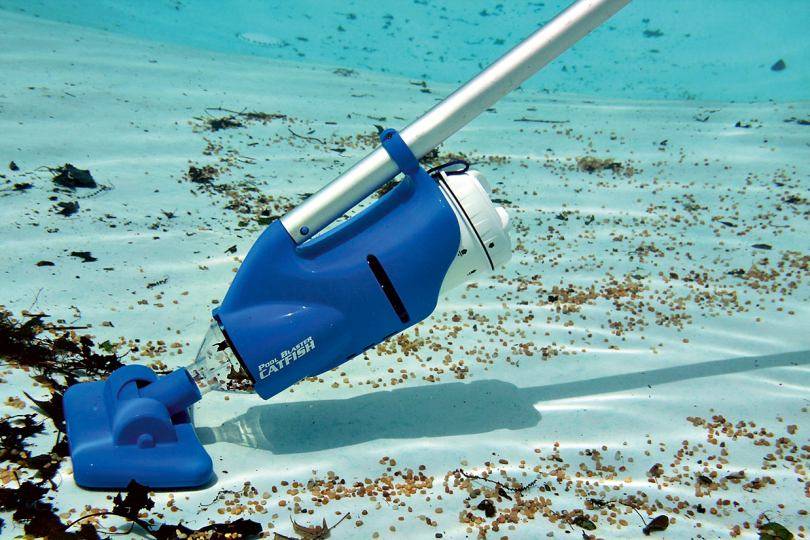 Простейший вариант подводного пылесоса представляет собой щетку, телескопическую штангу и шланг. Такой пылесос подключается к системе фильтрации воды через переходник в скиммере (водозаборник).