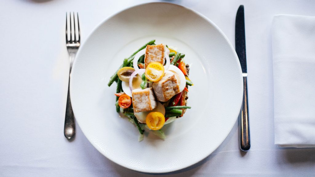 Вареная рыба со свежими овощами