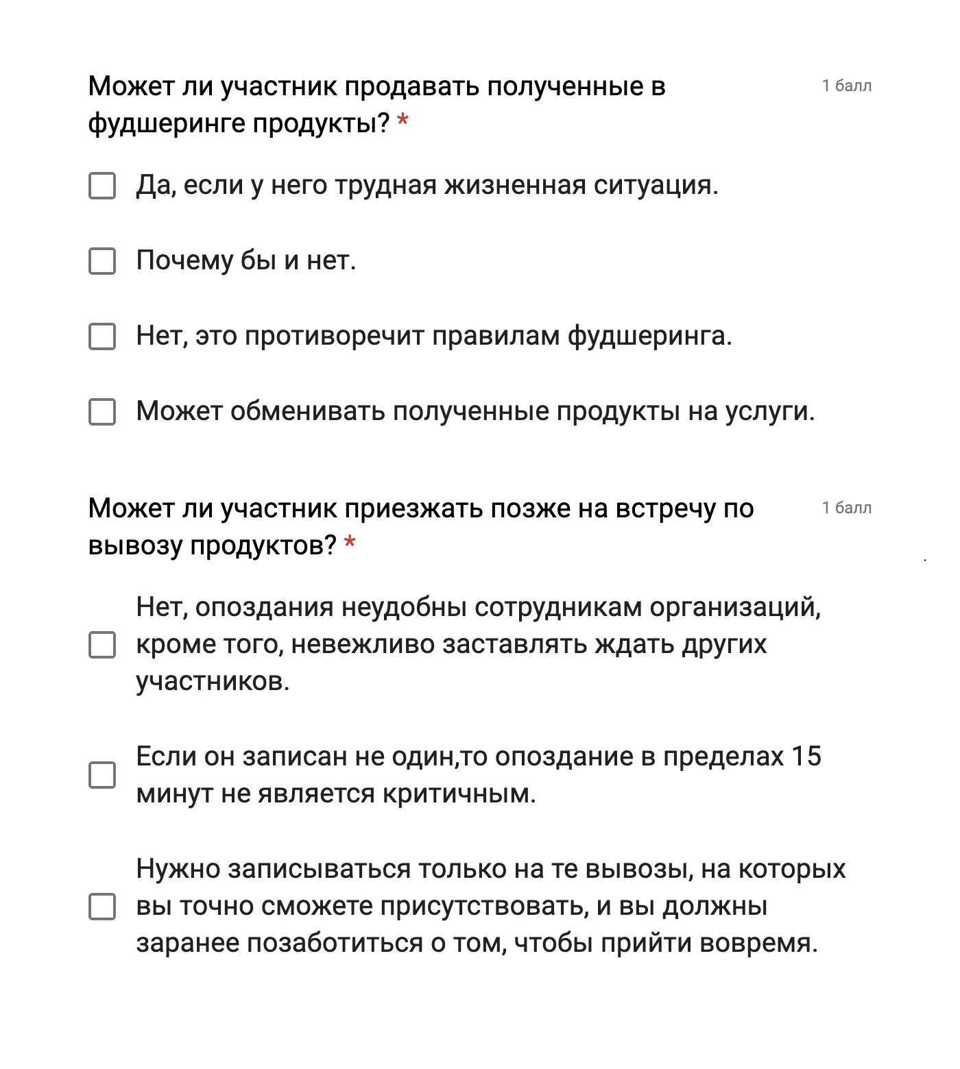 Первый проект называется просто «Фудшеринг». Он работает через сайт и группы во Вконтакте, их две — московская и петербургская. Сайт сделан по образцу немецкого сайта фудшеринга. Здесь тоже нужно прочитать правила и пройти тест на их знание. Когда ваше участие в проекте одобрят, нужно будет прикрепиться к магазину.