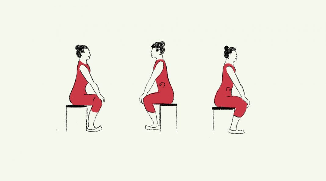Сядьте на удобный стул, держите спину прямой, а стопы вместе, пятки немного оторвите от пола. Немного двигайте мышцами живота и спины. Представьте, что точка на 1.5 см ниже пупка двигается вокруг пупка с левой стороны в правую. Пусть она пройдет вокруг пупка восемь раз. Затем три раза глубоко вдохните и выдохните, и совершите еще восемь вращений точки с правой стороны в левую.