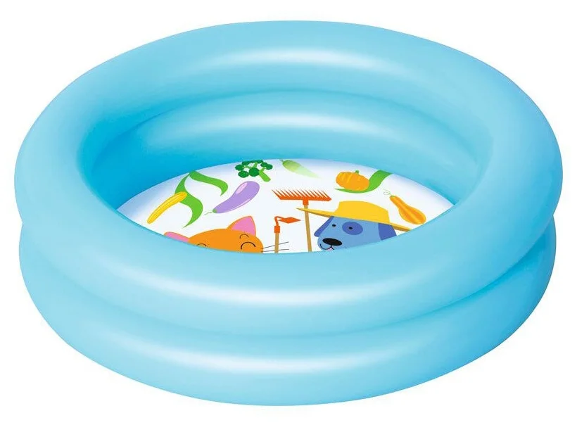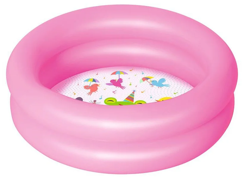 - Надувные бассейны. Пожалуй, это самый доступный и простой вариант, состоящий из нескольких колец, которые при помощи ручного или электрического насоса надуваются и образуют ёмкость для принятия водных процедур. Обладают небольшими размерами и высокой степенью подверженности влиянию негативных внешних факторов. Зачастую данное преобретение целесообразно, если для сооружения полноценной конструкции нет функционального места или соответсвующих финансовых возможностей, а желание побаловать свою семью наличием бассейна всё же присутствует.