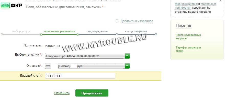 Укажите тип услуги, в зависимости от того, что вы хотите оплатить — квартплату или капремонт.