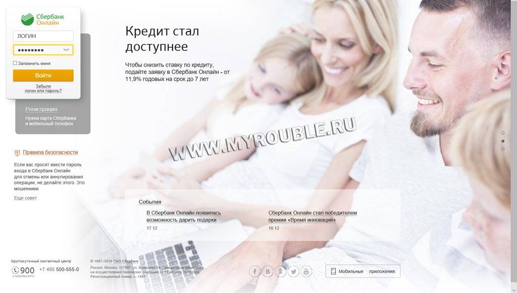 В целях безопасности вход в онлайн-банк всегда осуществляется с подтверждением. В версии для смартфонов клиент вводит код, который придумывает лично, или прикладывает отпечаток пальца. В десктопном формате необходимо ввести логин, пароль поступит в СМС с 900. Для использования интернет-банка необходим «Мобильный банк».