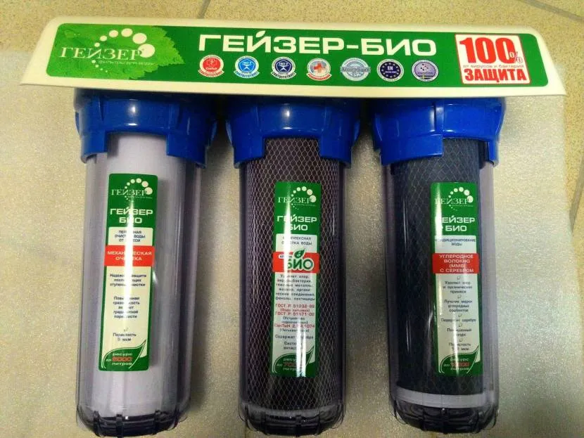 Самой высокой эффективностью для повседневных бытовых целей обладает такая установка, как Гейзер Престиж, Гейзер 3 и Гейзер БИО. В устройство картриджей этих систем, кроме микропористого полимера, входят различные материалы. Например, широко распространены очищающие элементы с высоким содержанием серебра. Благородный металл способен блокировать деятельность многих вредоносных организмов. Такое обеззараживание безупречно решает проблемы с неприятным запахом воды из крана.