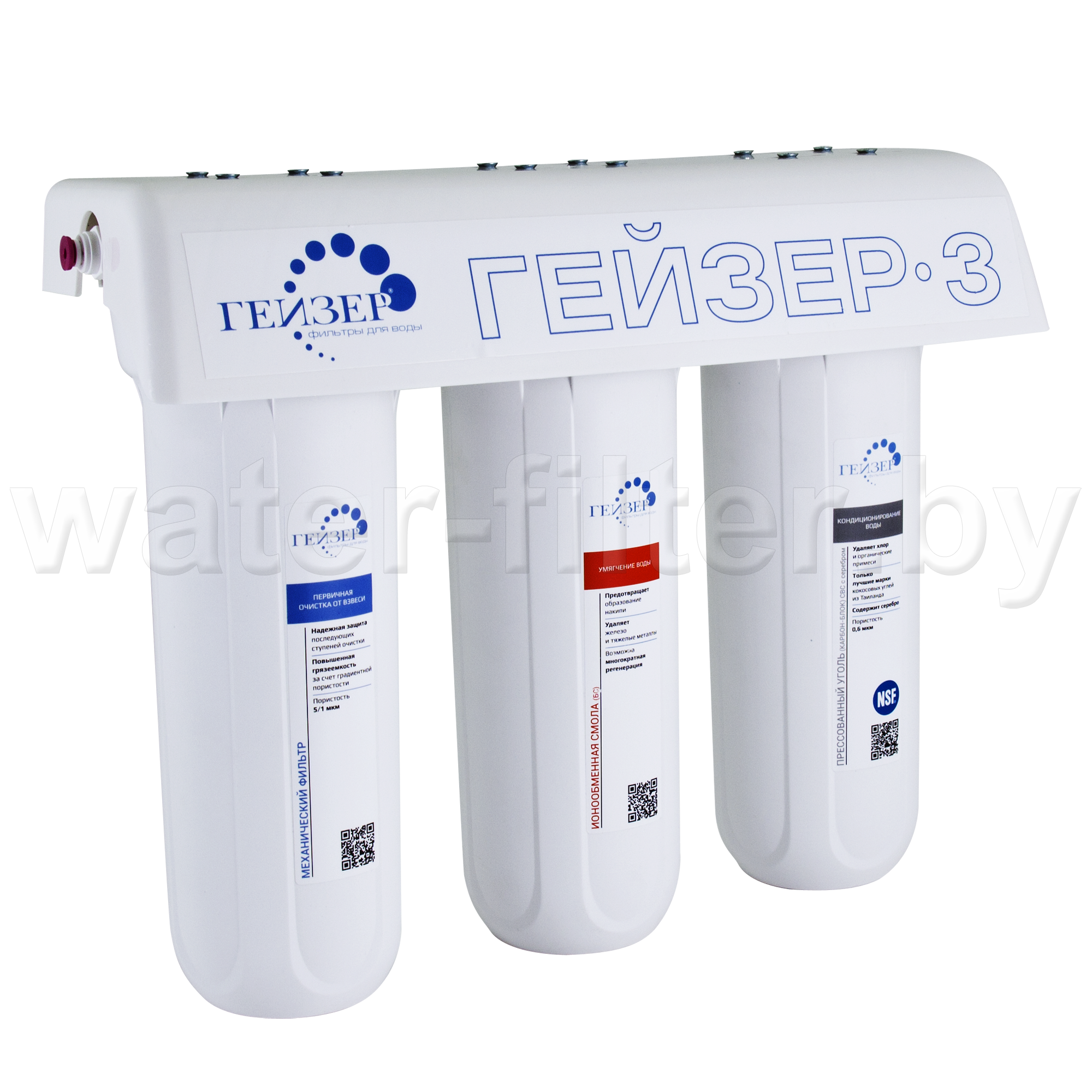 Более дорогостоящий вариант от “Гейзер” с соответствующей пропускной способностью в 2,5-3 л/мин и стационарным краном в комплекте. Среди ключевых особенностей этой системы очистки – сертифицированная защита от вредоносных вирусов и бактерий, полностью удовлетворяющая все требования действующего государственного стандарта.