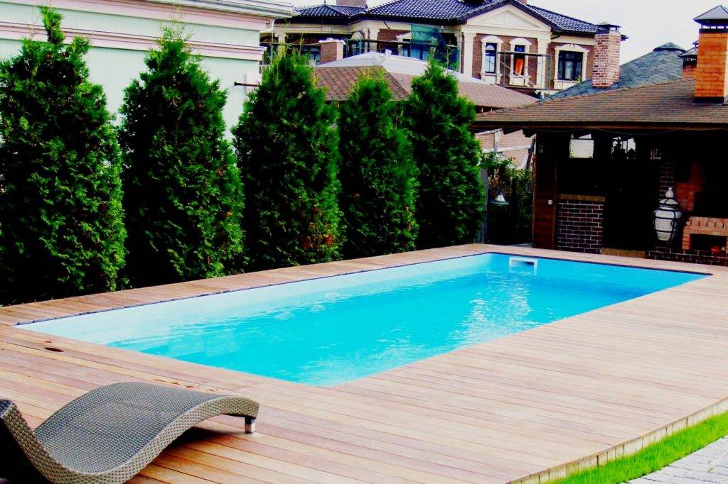 Коттеджные участки обычно имеют прямоугольную форму. Это означает, что такие бассейны устанавливаются легче, чем круглые. Для установки бассейна необходимо тщательно продумать его расположение. Одно из самых подходящих мест — вдоль забора на краю участка. Помните, что прямоугольные чаши не сильно нагреваются на солнце, поэтому частично затененные участки для них не подходят.