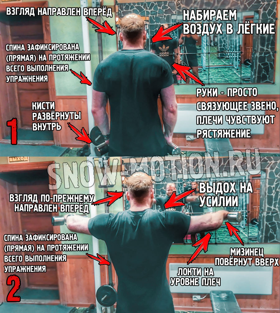 Махи в стороны с гантелями стоя: техника выполнения
