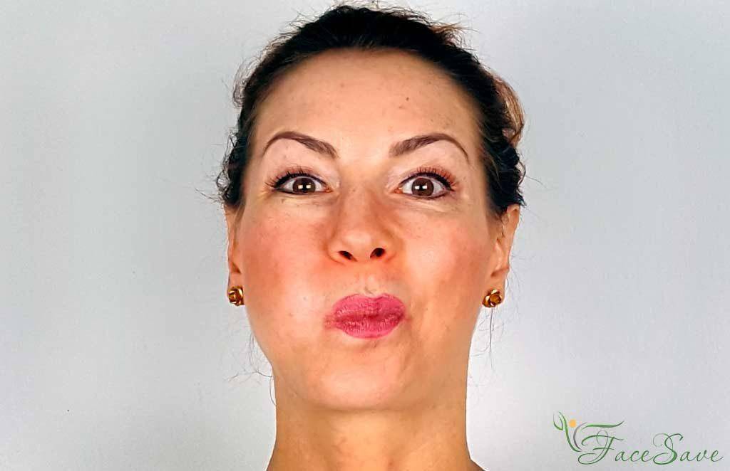 - Вытяните губы вперёд, имитируя позу трубача. Сохраняйте положение 1–2 минуты, медленно вдыхая через нос. Для усиления сопротивления, прижмите к губам ладонь. Данное упражнение уменьшит количество морщин в области носогубного треугольника.