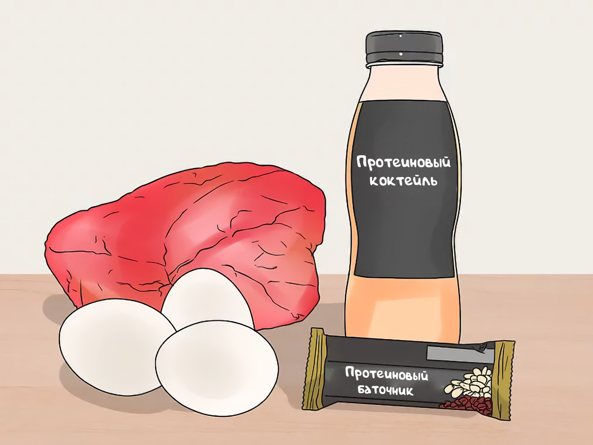 Важно, чтобы питание содержало достаточное количество белка, играющего важную роль в формировании новой мышечной массы. Белок следует потреблять, примерно, 1,5 г на 1 кг веса