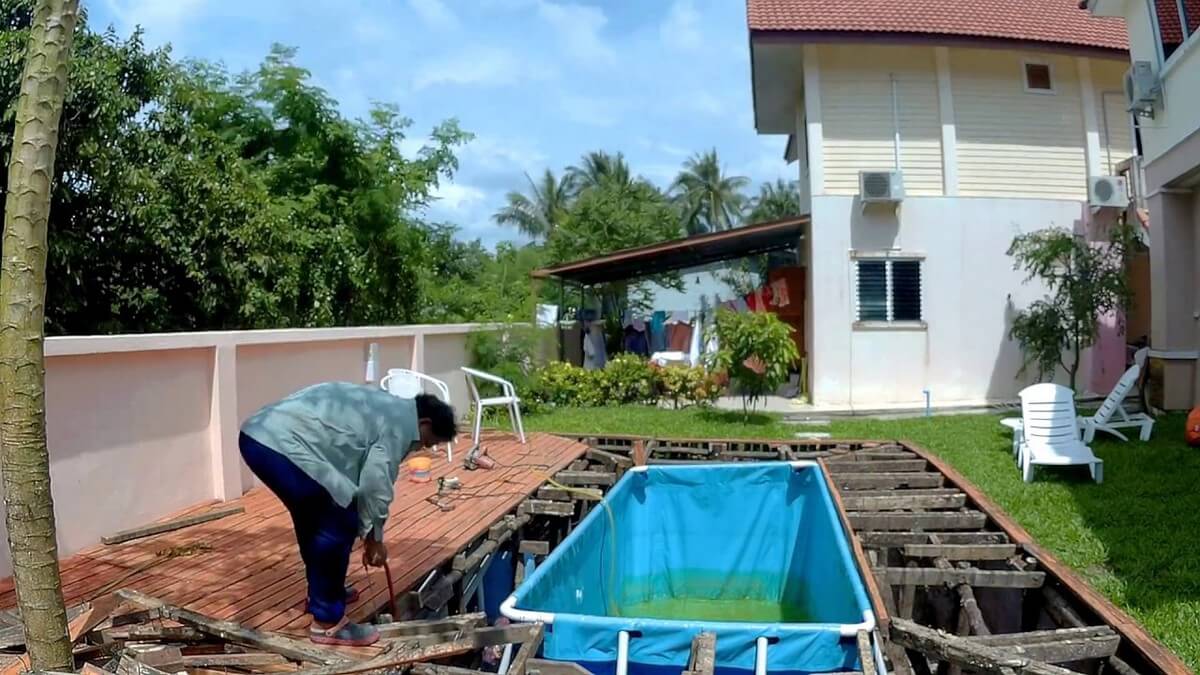 Следующим шагом можно будет запланировать сооружение деревянного настилом вокруг бассейна, который будет окружать его и создавать дополнительные удобства отдыхающим, где будет возможность поставить зонты и садовую раскладную мебель, после чего можно смело приглашать друзей в свой райский уголок у бассейна на загородном участке.