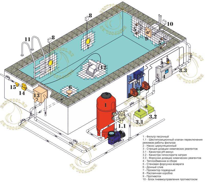 Пошаговое подключение системы к бассейну: