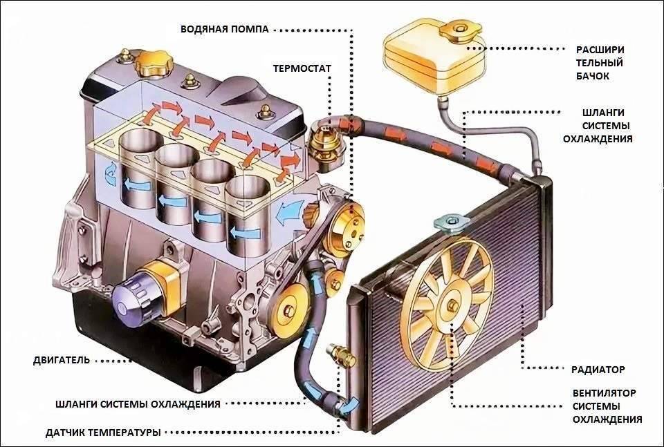 Конструктивно охлаждение современного двигателя реализовано не совсем идеально. Это ответ на вопрос, почему закипает машина. Система представляет собой комбинацию жидкостного и водяного типа. Несмотря на это, она имеет много недостатков. Основная проблема — обеспечение постоянного и действенного отвода тепла.