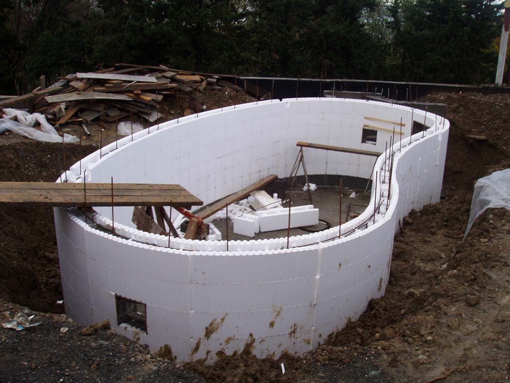 Специалисты группы компаний “Всеслав” владеют технологией, которая позволяет быстро и без сложных фундаментов создавать чаши каких угодно размеров, формы и с любым профилем дна. Это достигается за счет установки чаши бассейна прямо на материковый грунт. Для возведения чаши используется несъемная армированная пластиковая опалубка, остающаяся внутри конструкции и имеющая уже готовую для облицовки идеально гладкую и ровную поверхность.