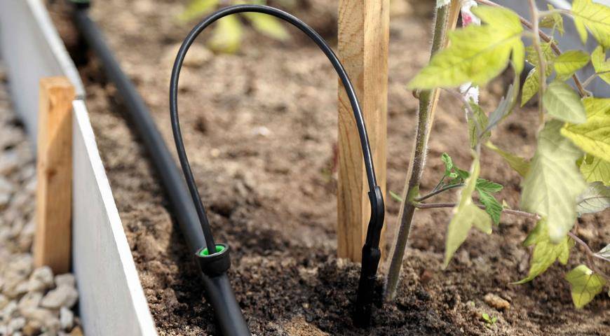 Многие сельскохозяйственные культуры нуждаются в поливе под корень. Например, помидоры. Орошать растение со шланга в этом случае крайне проблематично. Поэтому капельный полив помидоров в теплице позволяет создать оптимальные условия для выращивания. Подробнее о капельном поливе в теплице вы можете прочитать в статье «Что представляет из себя капельный полив в теплице, его преимущества».