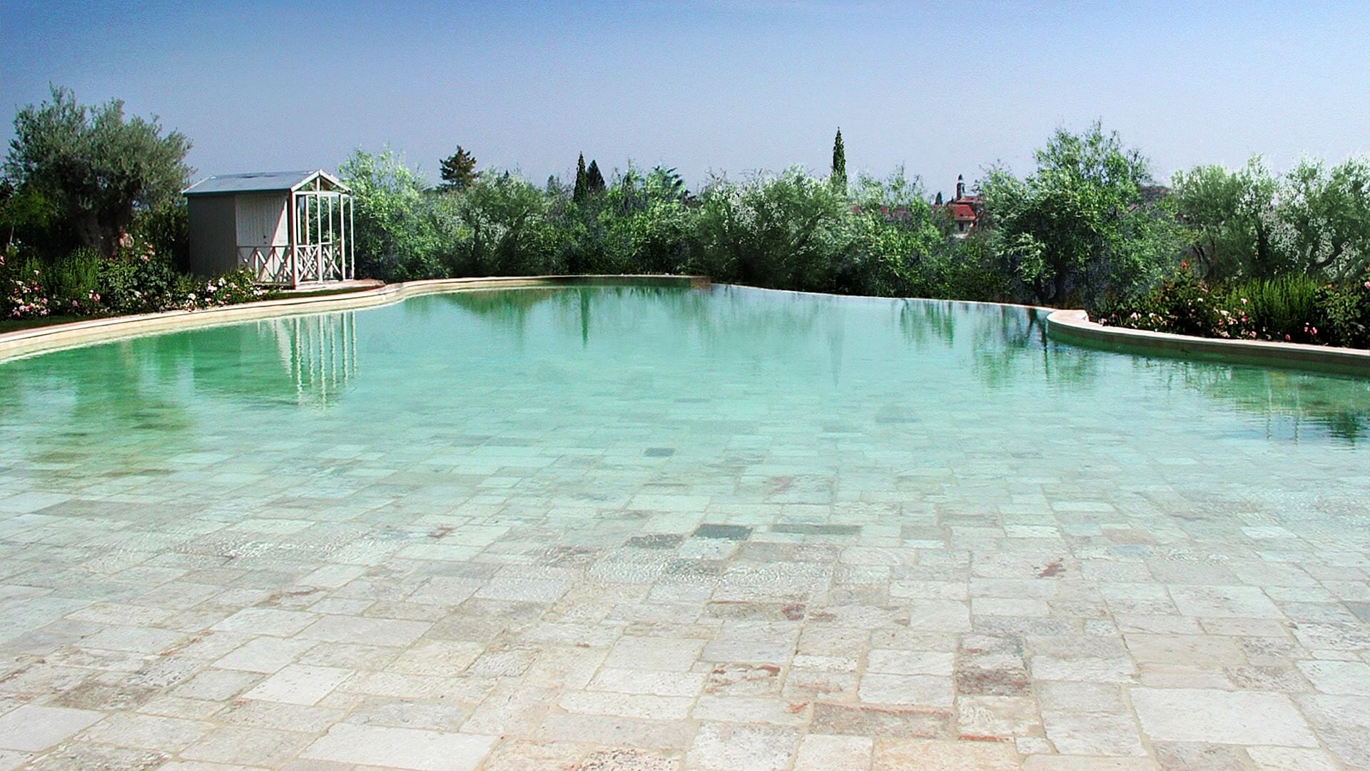 Чтобы почувствовать себя где-то на южном курорте достаточно использовать материалы с искрящимися частицами, которые будут активно переливаться в солнечном свете, и создавать роскошный визуальный эффект. Кстати, такие материалы способны еще и заставить воду быстрее прогреваться, а после медленнее остывать, что позволит существенно увеличить сезон купания.