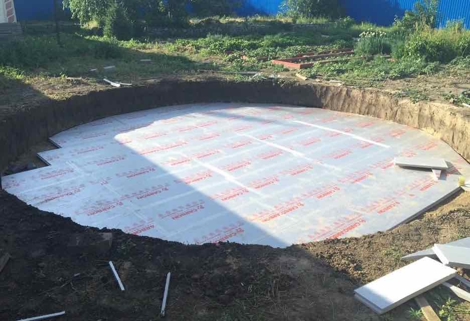 За счет характеристик материал применяют для основы под каркасный бассейн. Он предотвращает быстрое охлаждение воды от земли, поэтому нагреть ее становится намного легче.