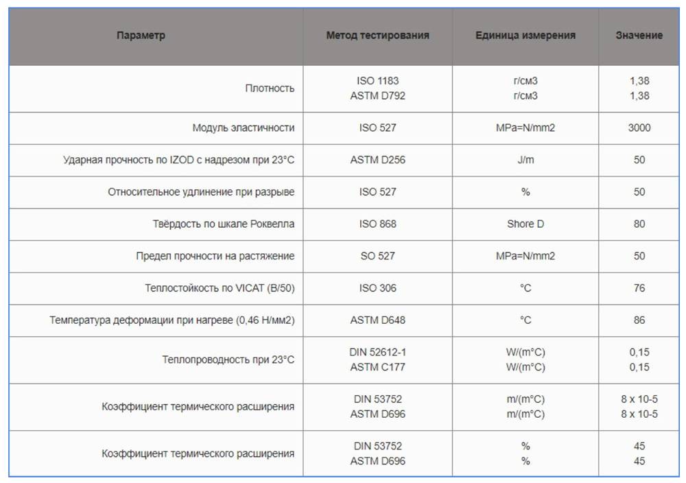 Рис. 6 Физические характеристики PVC