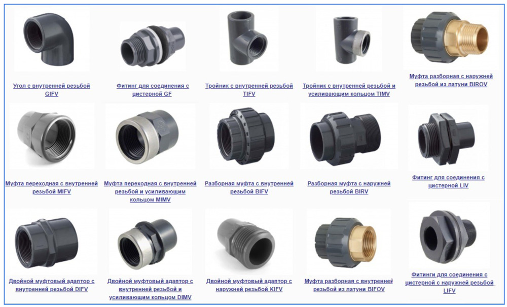 Рис. 4 Резьбовые PVC фитинги и фасонные детали под склейку