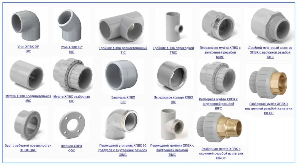 - Широкий ассортимент. Представленные в торговой сети клеевые трубы обычно имеют диаметры от 16 до 500 мм, для их стыковки предусмотрен широкий ряд гладкостенных фасонных деталей и фитингов. Также многие фирмы изготовители поставляют на рынок в широком ассортименте фитинги ПВХ клеевые с резьбой и запорную арматуру в виде шаровых кранов.