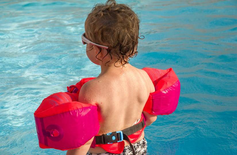 Помните о том, что ребенка важно защитить от солнечных лучей: хорошо, если бассейн оснащен специальным защитным навесом от солнца
