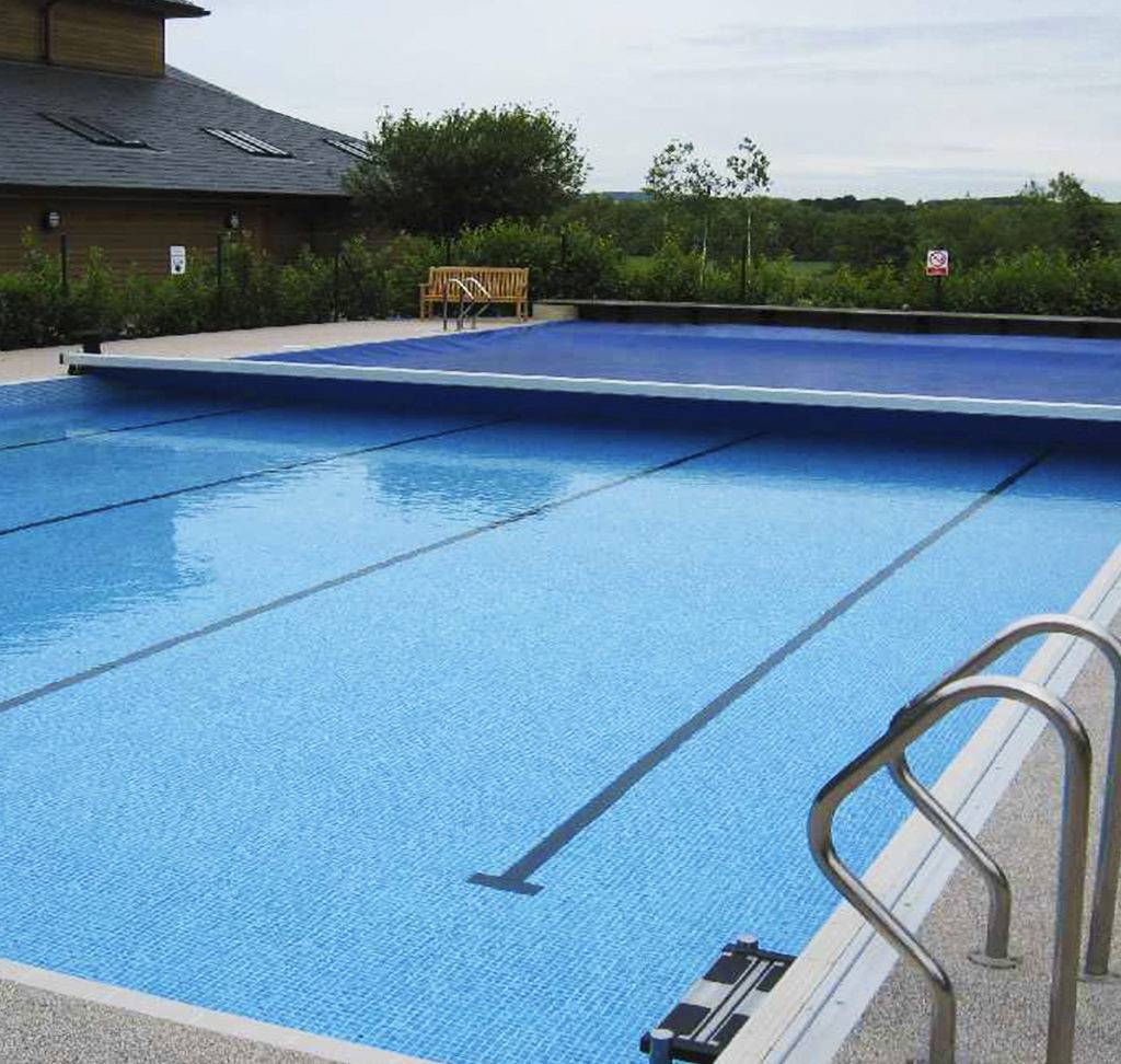 Защитные чехлы часто прикрепляют к дорожкам, идущим вдоль бассейна. Эти направляющие не только выдерживают любой вес на крышке, но и обеспечивают полную герметичность бассейна, помогая защитить от мусора и испарения.