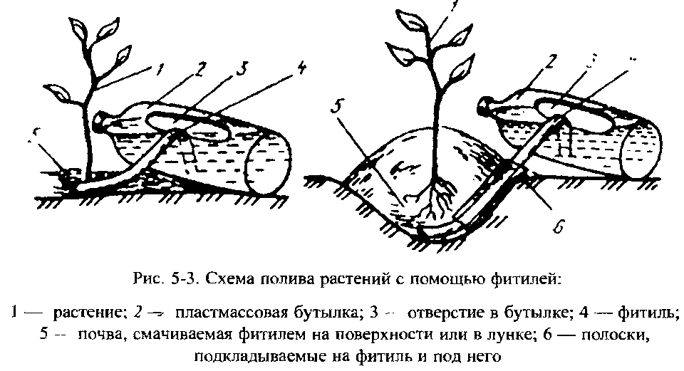 Выше описанный способ это, на мой взгляд, самый простой в реализации, но есть еще несколько вариантов, как сделать полив помидор через бутылку. Сейчас мы поверхностно рассмотрим и их, особо не вдаваясь в подробности, все и так понятно, если посмотреть на схему.