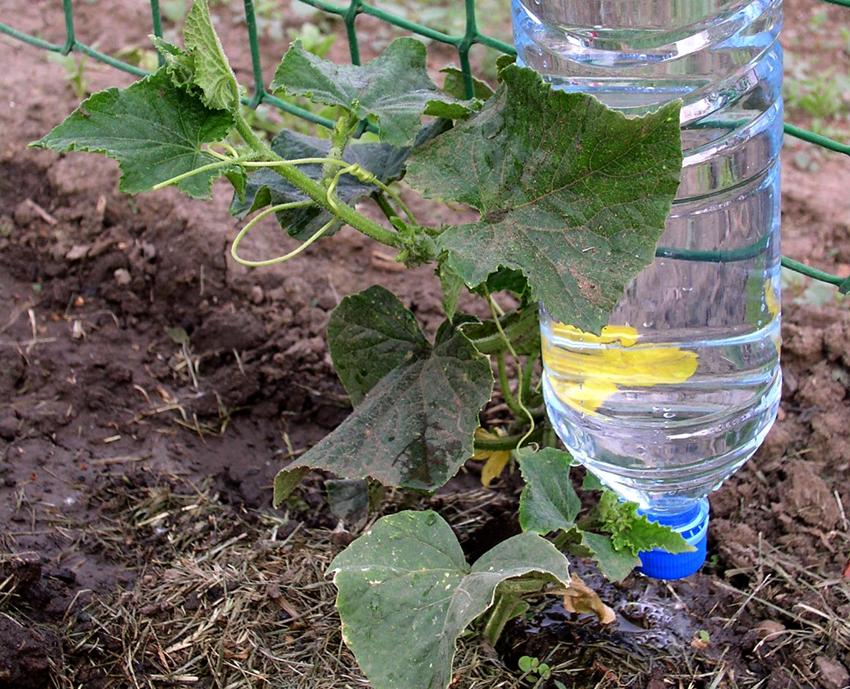 Еще один вариант заключается в подвешивании бутылки, с маленьким отверстием внизу, возле каждого растения. Более детально о способе рассказано в видео в конце статьи.