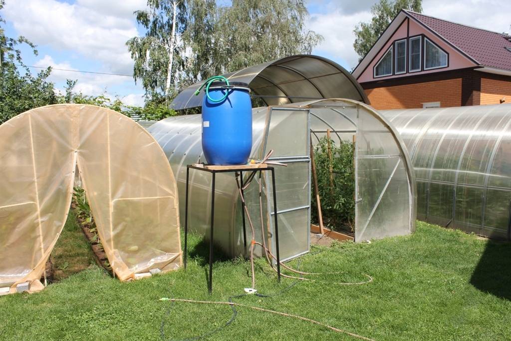 - Накопительную емкость выбирают достаточно большую. Если это бочка, то ее выкрашивают в темный цвет. Для исключения испарения влаги тару накрывают крышкой.