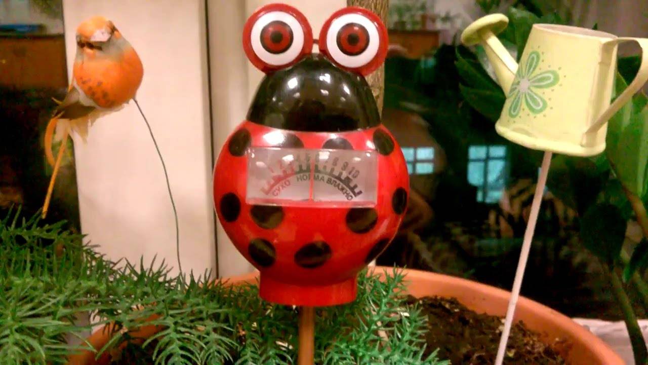 Подобрать оптимальный режим полива поможет измеритель влажности почвы для комнатных растений. Этот прибор позволяет оценить количество влаги на определенной глубине. Вилка индикатора прибора втыкается в грунт на 2/3 длины. Стрелка на датчике покажет «влажно» или «сухо».