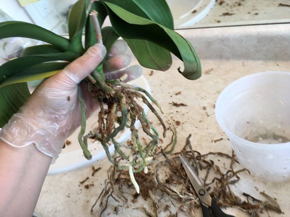 Орхидея со сгнившими корнями после залива
