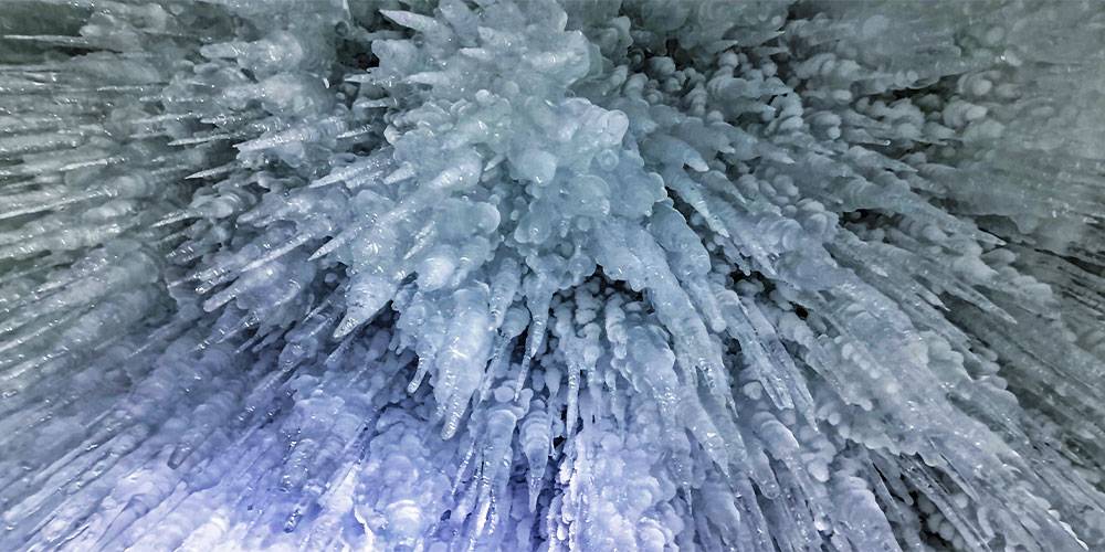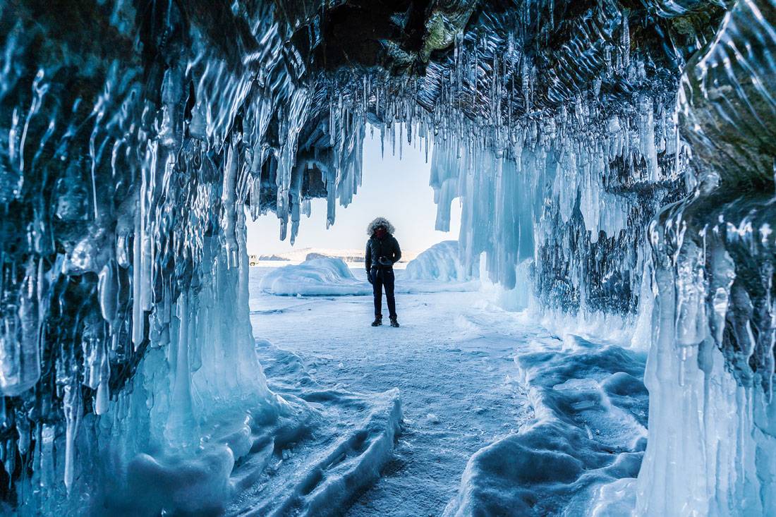 Вы наверняка слышали про ледяные пещеры? На Байкале пещер мало, но встречаются гроты с сосульками или наплесками. За счет замкнутого пространства и особого освещения картинка выглядит волшебно. Не смотря на красоту нужно понимать, что находиться в таких пещерках или гротах может быть опасно — в любой момент часть «сталактитов» (не дай бог) может упасть вам на голову. Однако, это не останавливает блогеров и фотографов от того чтобы искать такие пещеры и устраивать там фотосессии. Впрочем, искать их самостоятельно — занятие бессмысленное, к началу туристического сезона местные жители уже знают где в этом году самые красивые места и возят туда экскурсии.