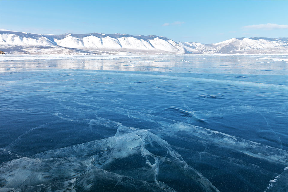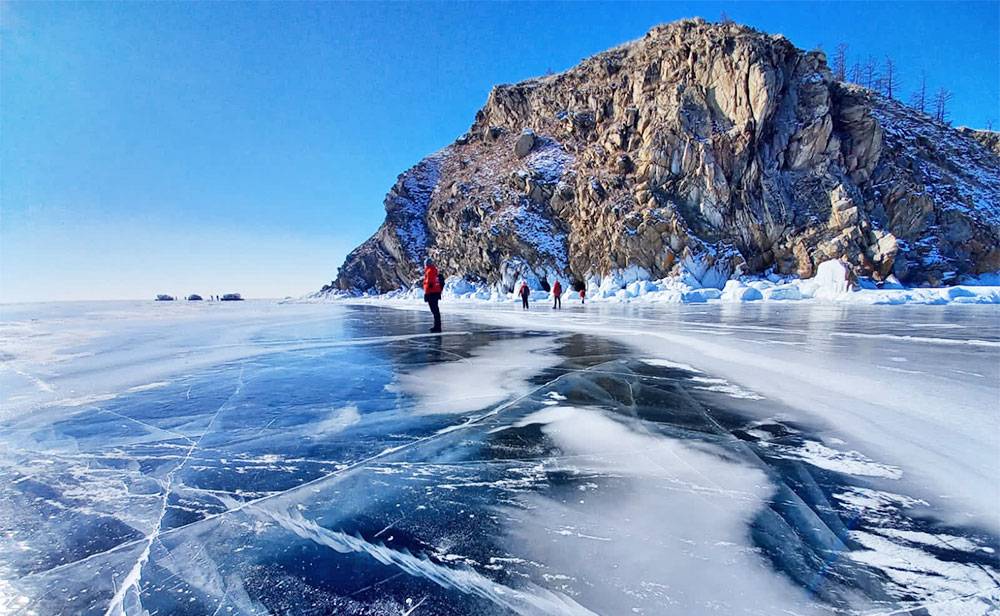 С конца января до середины февраля — лучшее время для чистейшего льда. Благодаря сибирским морозам Байкал, прочно скованный льдом, превращается в огромное зеркало, растянувшееся на многие километры.