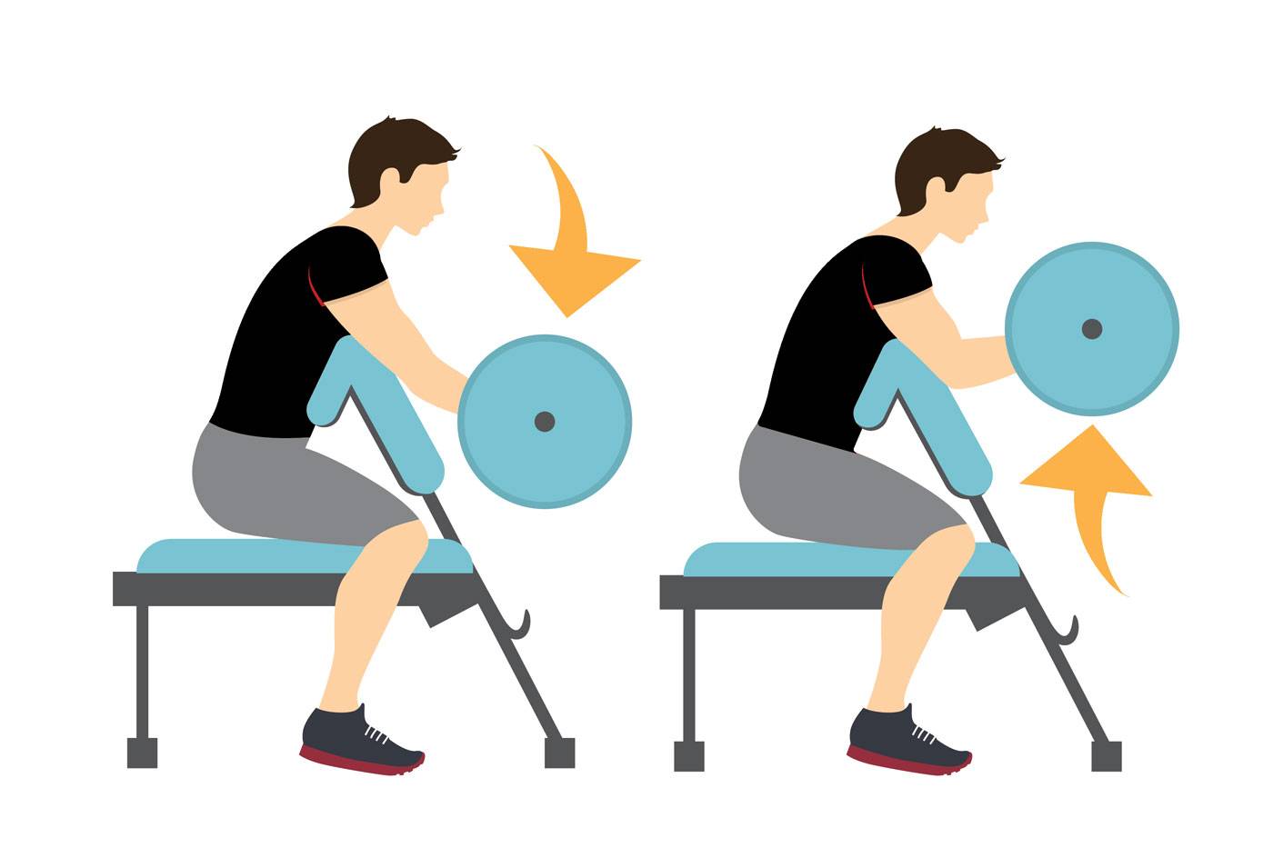 Поэкспериментируйте с весами. Вам необходимо подобрать такой вес, чтобы вы могли выполнить запланированное количество подходов и повторов и последние 3 -4 повтора Вам было тяжело, но не настолько, чтобы ухудшить свою технику выполнения упражнения.