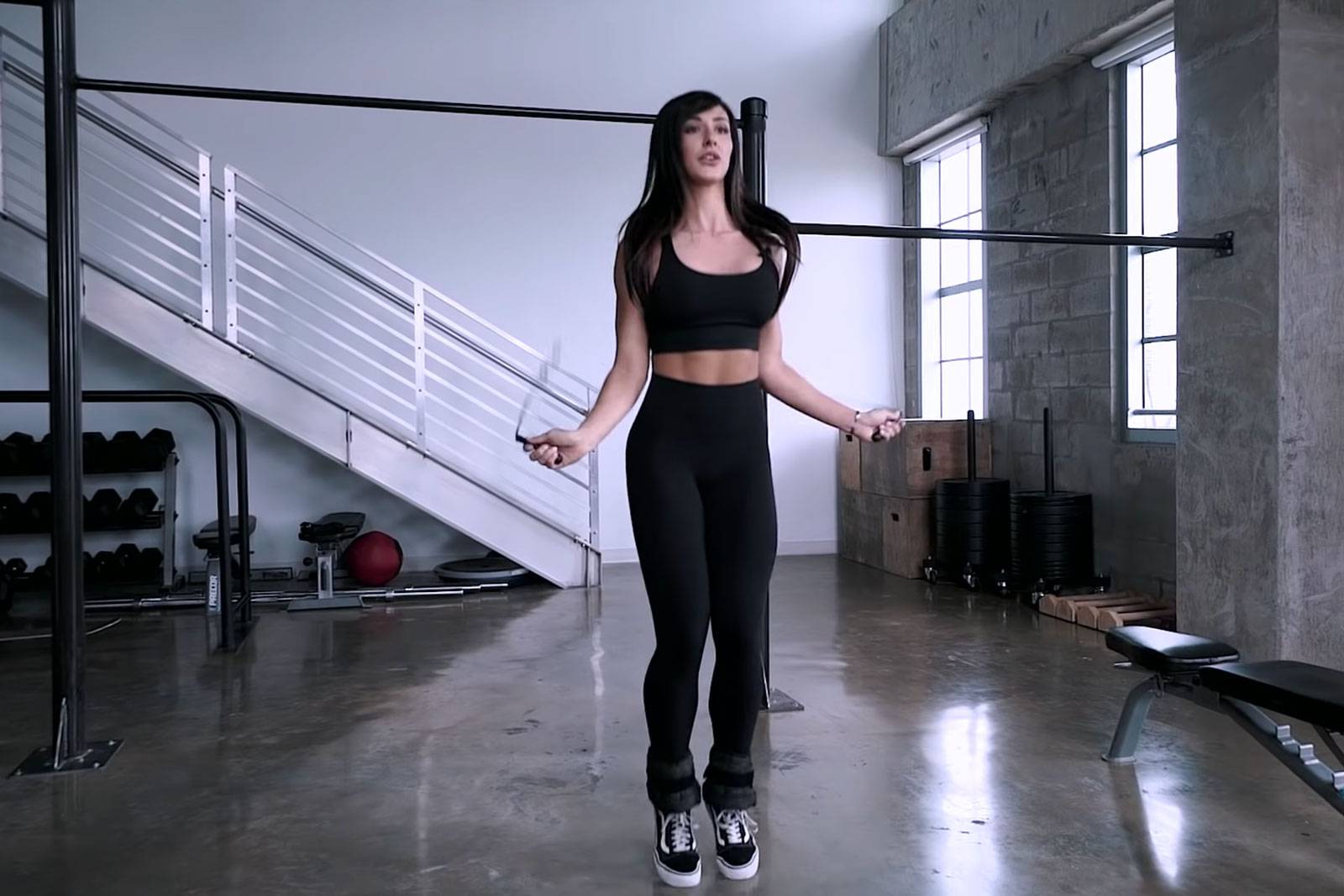 Завершаем тренировку прыжками на скакалке. Делайте это упражнение, чтобы расходовать максимум калорий, избавиться от подкожного жира и придать ягодицам еще более упругий вид.