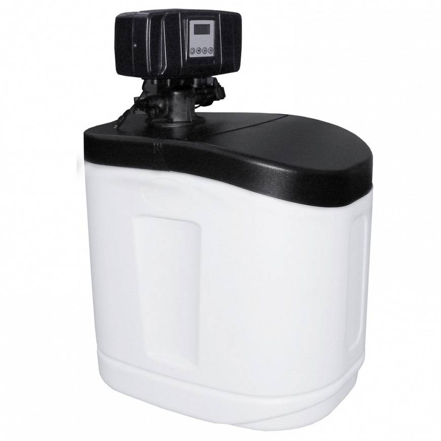 Эффективно очищает воду от содержащихся в ней ионов кальция и магния. Работает в температурном диапазоне +5..+38 градусов. В основе действия прибора используется гелеобразная сильнокислотная катиообменная смола. Восстановление картриджа происходит в автоматическом режиме. Потребителю только нужно периодически добавлять соль в бак устройства. Предназначен для установки непосредственно перед бытовыми приборами (бойлерами, отопительными котлами или другой бытовой техникой).