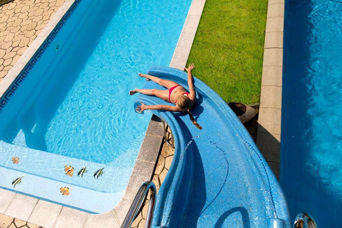Водные горки для бассейнов на даче или в загородном доме различаются по размерам, формам и иным параметрам.
