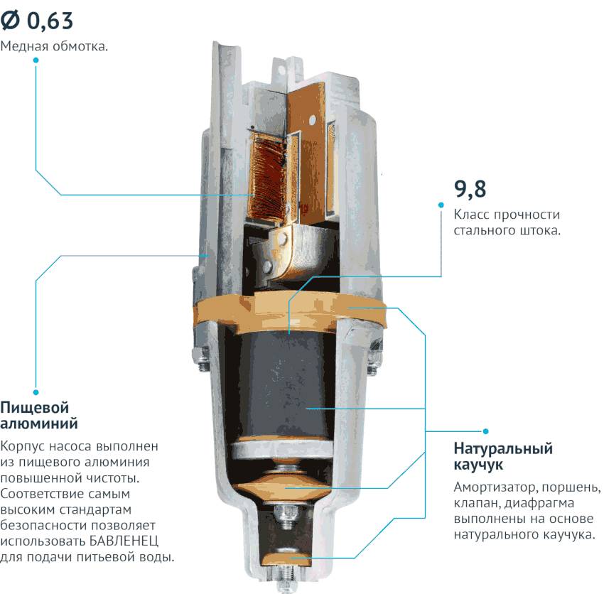 Вибрационные погружные насосы способны поднимать воду на большую высоту
