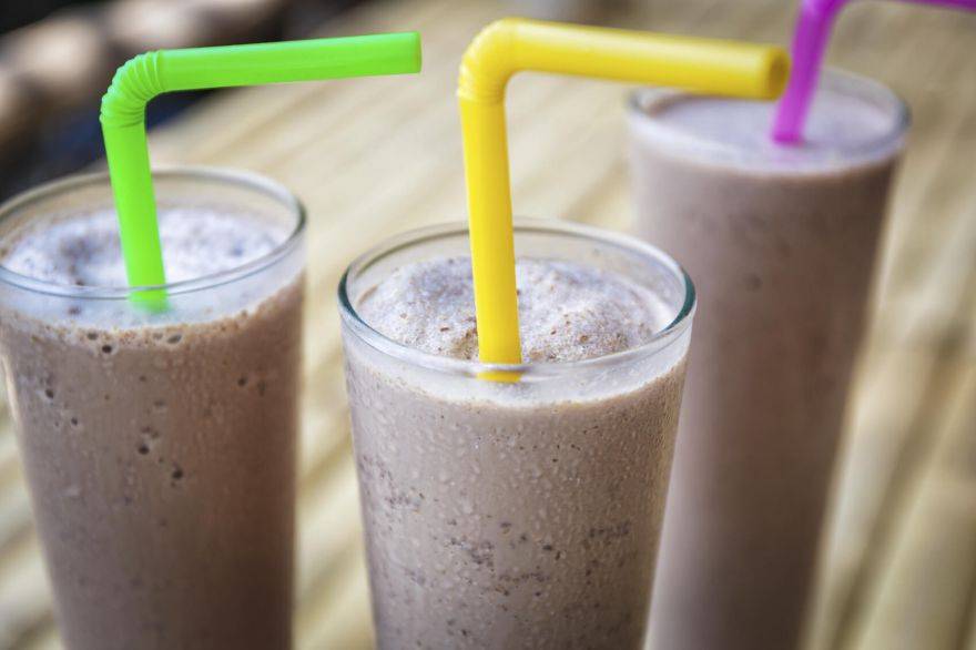 Мятный: цельное молоко – 250 мл, 1 стакан шоколадного или ванильного мороженного, ¼ ложки экстракта мяты, мятно-шоколадный протеиновый порошок – 2 мерки.