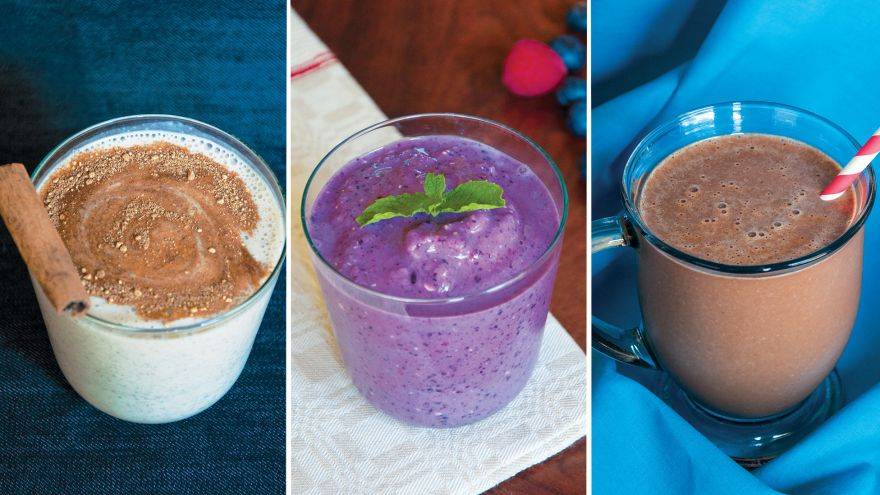 Шоколадно-миндальный: цельное молоко – 500 мл, размельченный темный шоколад – 60 г, миндальная паста – 2 столовые ложки, протеин со вкусом шоколада – 2 ложки.